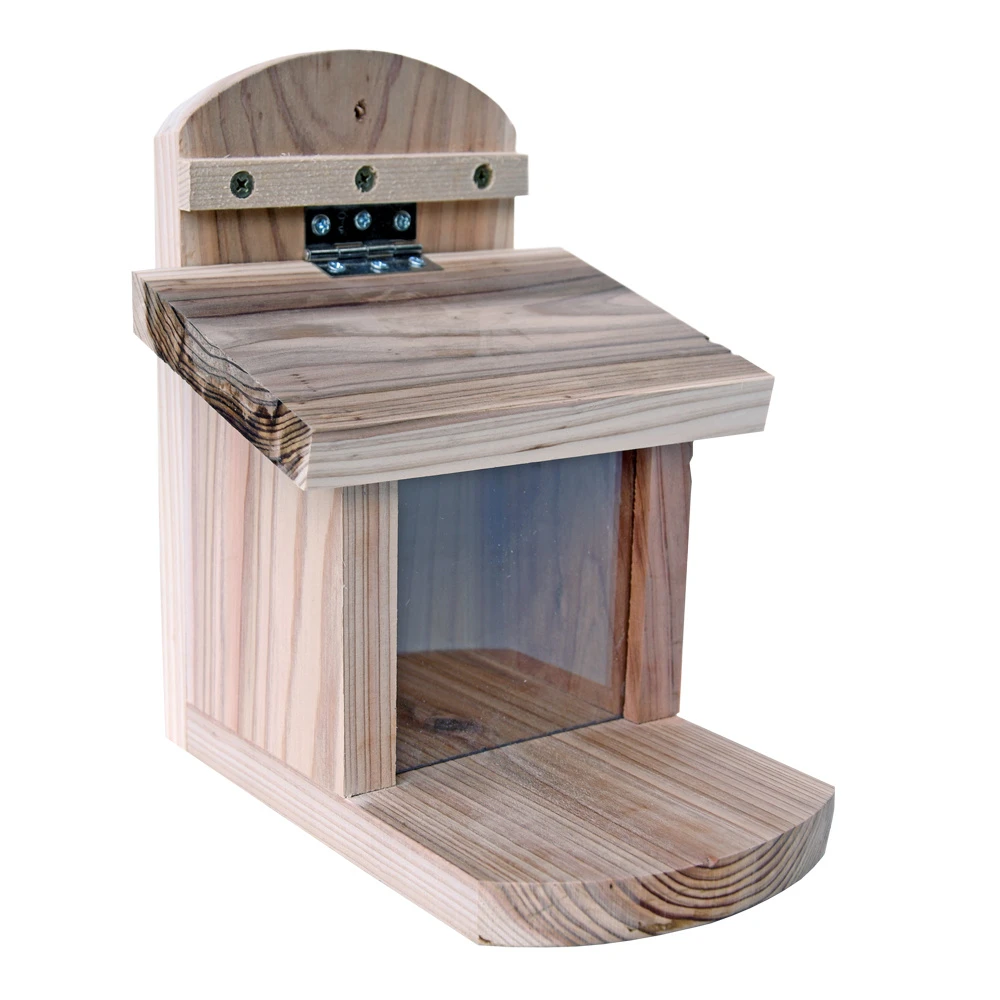 Dit grote eekhoorn voederhuisje voldoet aan de eisen van eekhoornvoeding. Het voederhuisje kan worden gevuld met pinda’s en dit zal wilde eekhoorns naar jouw tuin leiden! Zij zullen snel leren het deksel op te tillen om zo bij de pinda’s te komen. Dankzij het duurzame FSC goedgekeurde hout gaat dit eekhoorn voederhuisje lang mee en het scharnier is corrosiebestendig.