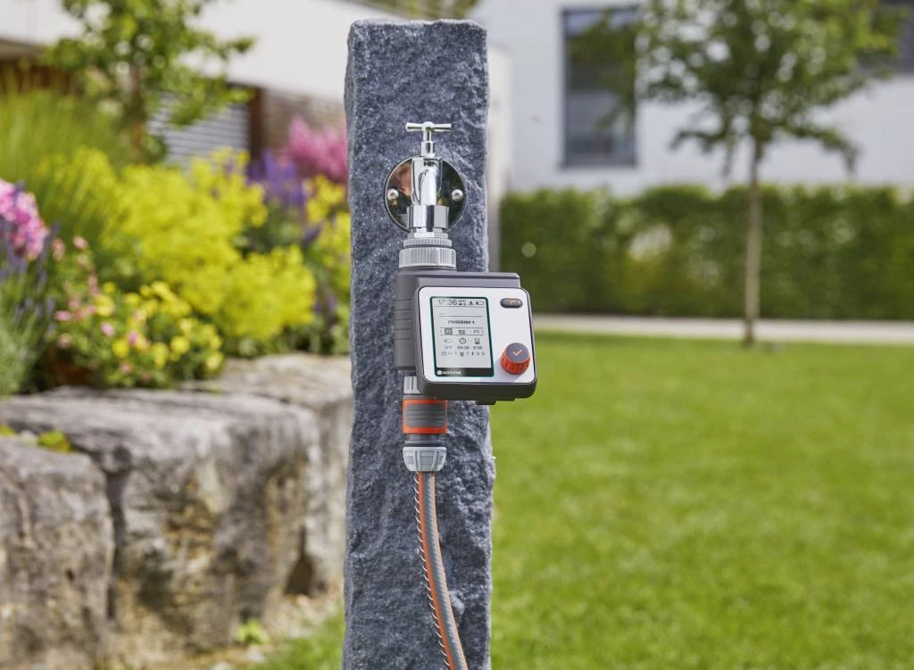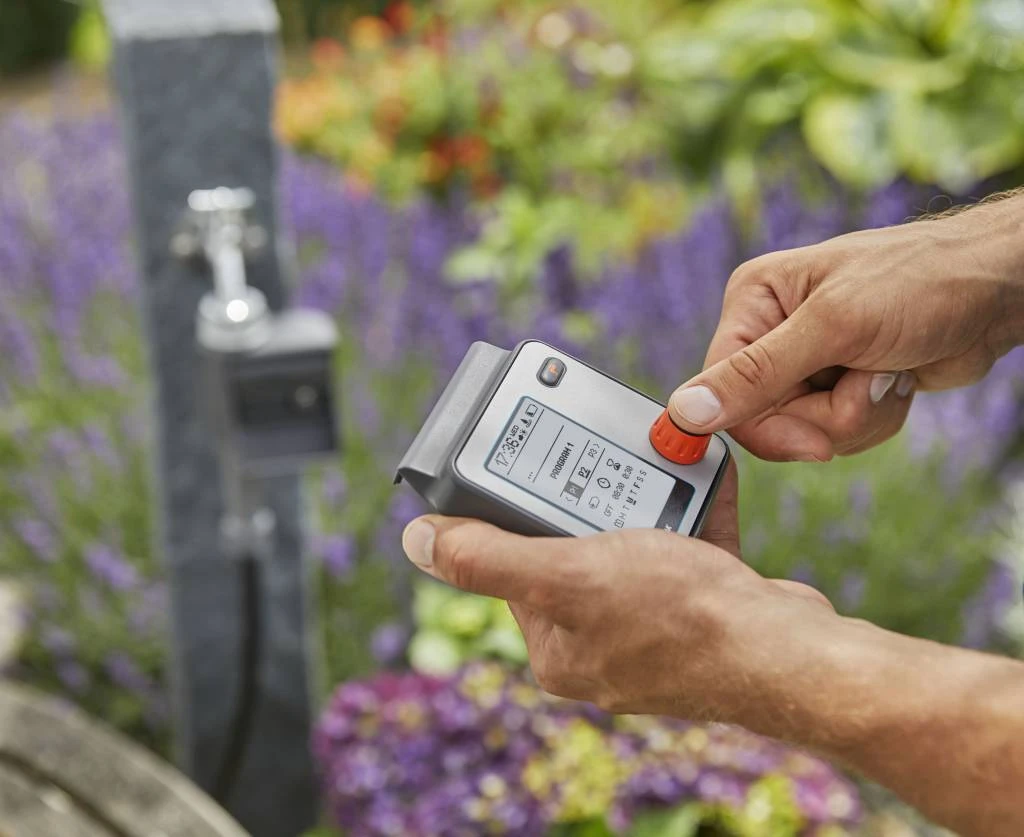 Daarnaast kan de besproeiingsduur gemakkelijk centraal aangepast of stopgezet worden. Het apparaat werkt op batterijen en is rechtstreeks aan te sluiten op de kraan. De Gardena besproeiingscomputer bedien je erg eenvoudig middels de draai- en drukknop. Dankzij het gemakkelijk leesbare en volledig grafische display, zie jij alle instellingen in een oogopslag. Daarnaast kan het menu in 10 talen worden ingesteld. Het bedieningspaneel is weerbestendig en kan verwijderd worden.