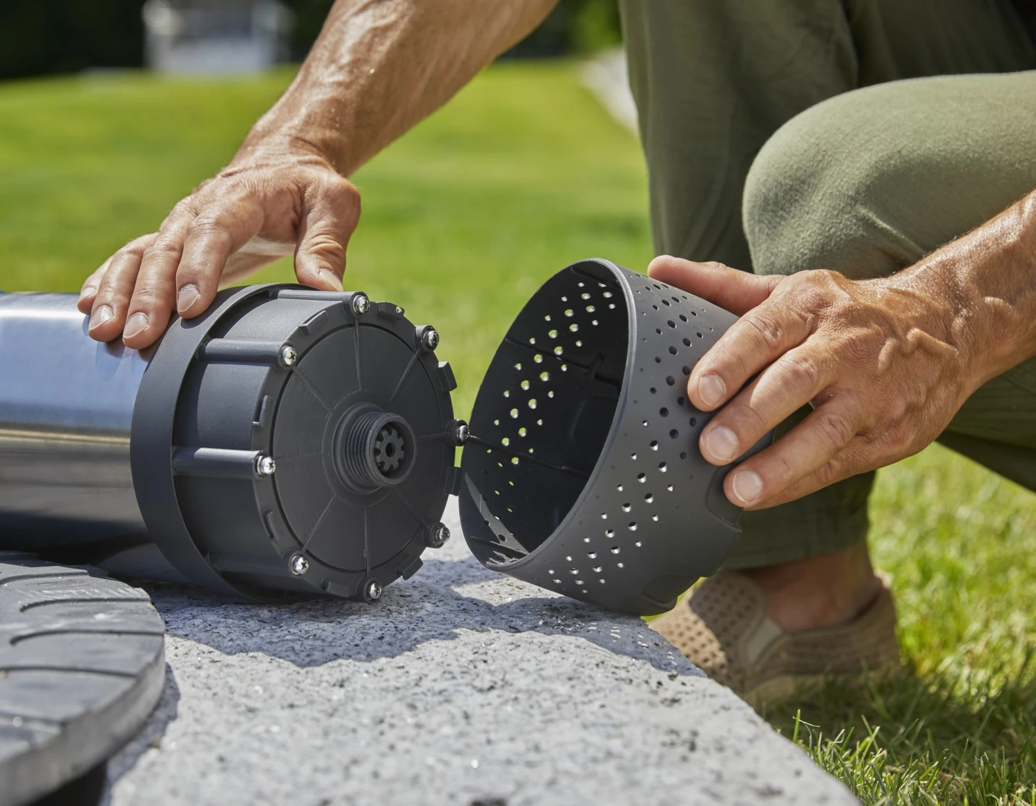 De pomp heeft een diameter van 149 mm en kan dus ook in smalle putten met diameter van 150mm. Met een bevestigingskoord van 20 meter en een verbindingskabel heeft de pomp een groot bereik en een nog grotere flexibiliteit. De dompel-drukopvoerpomp heeft een lange levensduur door de roestvijstalen behuizing en aansluiting. Zo wordt de pomp tijdens het werk onder water beschermd en is hij geschikt voor vaste leidingen. Voor vuil hoef je ook niet bang te zijn, de pomp kan worden gebruikt met een drijvende aanzuigset waardoor een perfecte oplossing voor handen is. Ook is het filter prettig om mee te werken, het beschermt de pomp tegen verstopping en schade. Een leeg reservoir is ook geen gevaar voor de dompel-drukopvoerpomp, de vlotterschakelaar beschermt het namelijk tegen schade door drooglopen.