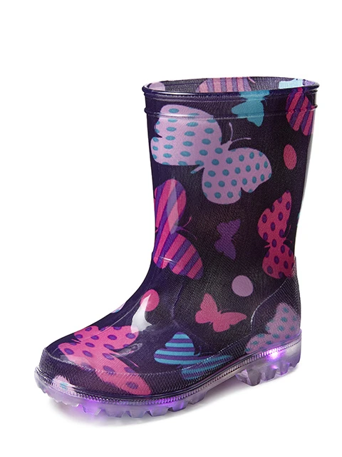 Regen, vieze modder of glad gras, ieder kind heeft er wel eens mee te maken. Goede laarzen voor je kind zijn daarom soms echt een must-have! Deze leuke kinderlaars is paars en heeft een leuk patroon van vrolijke vlinders, hierdoor is de laars niet alleen heel handig voor vies weer maar ook uniek. Iets anders bijzonders wat deze laars ook extra uniek en leuk maakt, zijn de veilige led lichtjes in de zool. Bij elke stap die je kind zet licht de doorzichtige zool op wat er zeker voor zorgt dat je kind niet meer stil wilt staan en je zeker in het donker er echt een feestje van kan maken! De laars is gemaakt van pvc en daardoor comfortabel en licht van gewicht. Ook zijn de laarsjes 100% waterdicht en zeer slijtvast, ze zullen dus lang mee gaan.