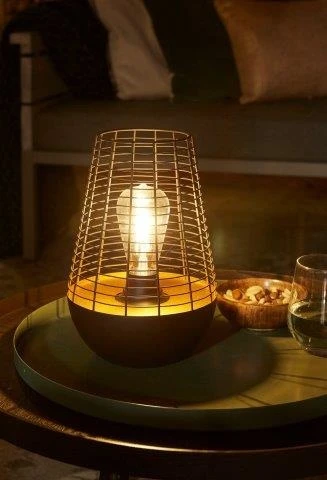 Hoe handig is het als je een lamp hebt die zowel binnen als buiten prachtig in het interieur past? Deze Chelsea Tripod tafellantaarn is in ieder geval super geschikt! Deze moderne lamp met een industrieel uiterlijk kan voor binnen als buiten gebruikt worden en is handig oplaadbaar met een USB kabel. Zo is hij dus onwijs flexibel in waar je hem neerzet en hoef je niet te letten op of er een stopcontact in de buurt is. De lamp is makkelijk aan en uit te zetten met de schakelaar bovenop. Met 2 softtone filament LEDs geeft deze lamp mooi warm wit licht met een helderheid van 15 lumen af. Dit is niet heel fel, en daarom ideaal om een gezellige sfeer in je huis of tuin te creëren. Het design van de tafellantaarn zorgt voor een mooi lichtpatroon wat schijnt rondom de lamp. Zo wordt je terras, dakterras of balkon meteen heel sfeervol! Wat ook heel handig is, is de timerfunctie in de lamp, zo hoef je je geen zorgen meer te maken of je de lamp wel had uitgezet! De lamp is gemaakt van metaal en kunststof en werkt op een 18650Li-ion 3.7V batterij. Afmetingen van de lantaarn: 180x270mm.