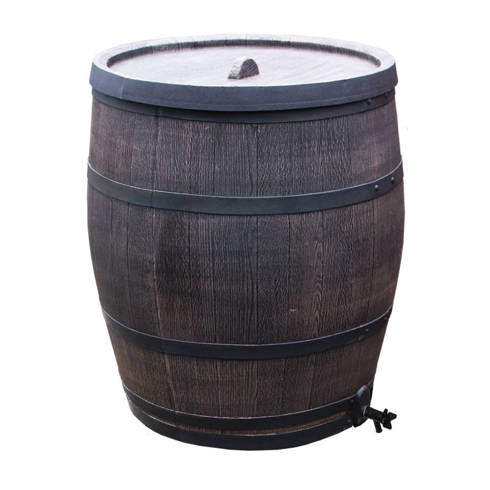 Stevige bruine houtlook regenton 350 liter. Inclusief deksel en kraantje. Mooi te combineren met de voet ten behoeve van Roto regenton. Makkelijk aan te sluiten op de regenpijp door middel van een vulautomaat zoals de regenton vulautomaat 70-80 of de vulautomaat bladvanger. Zo heeft u altijd een watervoorraad voor uw tuin in droge periodes.
