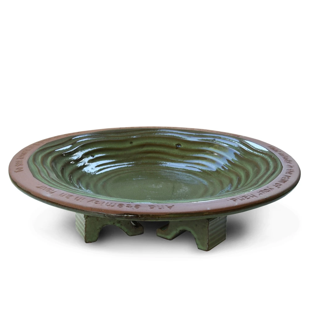 Het elegante bad Echo is een opvallende verschijning voor zowel jijzelf als voor de vogels in jouw tuin. Het vorstbestendige bad is gemaakt van terracotta en heeft een subtiele gevlekte groene kleur. Het bad wordt geleverd met drie geglazuurde pootjes zodat het bad iets boven de grond komt. Dit voorkomt vorstschade. Tot slot is er ook een standaard in onze webshop te koop waardoor je het bad 30 cm hoger kan plaatsen. Hoogte 10 cm, lengte 34 cm, breedte 34 cm.