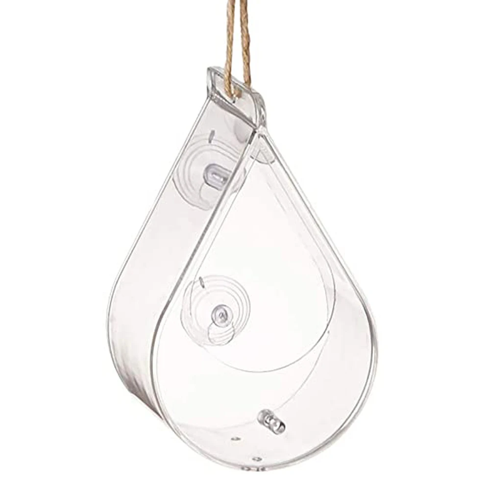 Dit druppelvormige vogelvoederhuisje is volledig transparant wat ervoor zorgt dat je de vogeltjes van dichtbij kan zien eten. Dit is mogelijk dankzij de rubberen zuignappen die het voederhuisje aan een raam kunnen bevestigen. Ook wordt er een touw meegeleverd om het vogelvoederhuisje gewoon op te kunnen hangen. Dit voederhuisje voor vogels is eenvoudig schoon te maken en geschikt voor alle soorten vogels.
