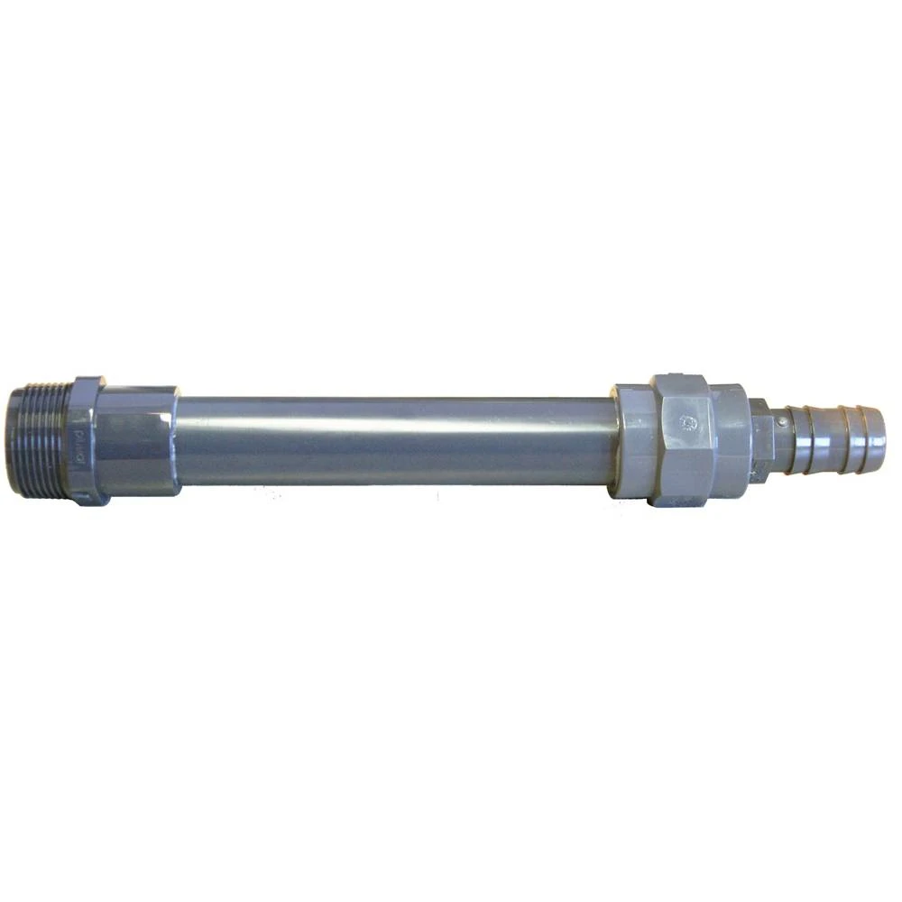 Deze universele zwengelpomptule kan gebruikt worden voor het aansluiten van een 25 mm slang aan een zwengelpomp. De tule wordt aan de onderkant van de handzwengelpomp bevestigd, waarna er een slang (25 mm) bevestigd kan worden om dieper gelegen water weg te kunnen pompen. Afmeting: 31,5 cm. Schroefdraad: 1 1/4″.